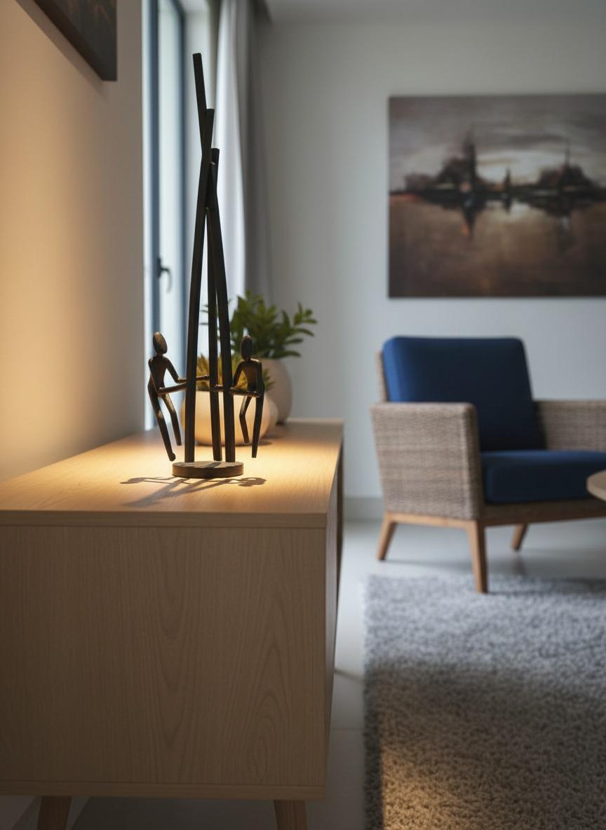 Ses lignes épurées et sa forme abstraite en font un ajout puissant et sophistiqué à tout intérieur moderne, inspirant une réflexion sur la connexion, la résilience et la force des rêves partagés