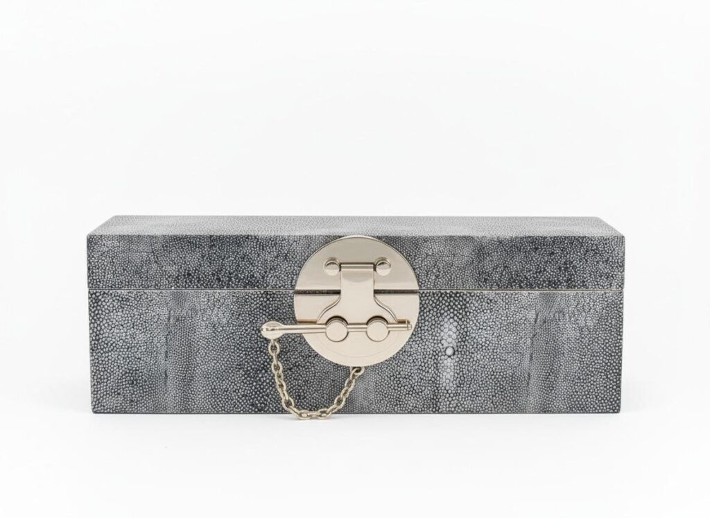 Alliant élégance et sophistication, cette boîte à bijoux dorée imitation peau de serpent est l’accessoire parfait pour ranger vos bijoux avec style. Sa texture raffinée et son fini doré éclatant en font un véritable objet de décoration, idéal pour sublimer votre espace. À l’intérieur, plusieurs compartiments bien pensés permettent de protéger et organiser vos bagues, colliers, boucles d’oreilles et bracelets en toute simplicité. Offrez-vous une boîte à bijoux luxueuse et tendance, pensée pour les amatrices de design et de détails raffinés.
