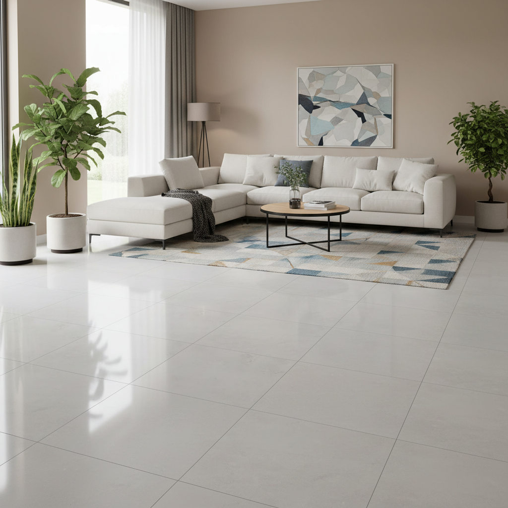 Ce carreau est un revêtement en grès cérame de forme carrée, présentant une surface mate et une texture légèrement nuancée qui imite l’aspect du ciment ou de la pierre naturelle. Sa couleur principale est un gris clair uniforme avec des variations de tons plus pâles et plus foncées, ce qui lui confère un style moderne et épuré. Il est généralement résistant, antidérapant et facile d’entretien, ce qui le rend adapté à une utilisation dans diverses pièces de la maison comme les salles de bain, les cuisines ou les espaces extérieurs.