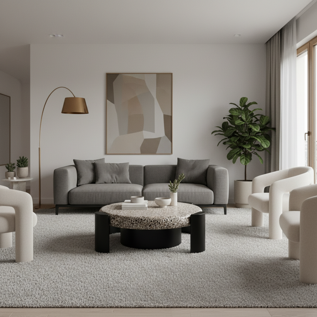 La table basse TERRA NERO associe un plateau rond à l’aspect terrazzo naturel et une structure noire mate aux lignes robustes. Son design équilibré mêle inspiration minérale et esthétique contemporaine, créant une pièce forte qui s’intègre parfaitement dans un salon moderne, chic ou architectural. Elle apporte à la fois stabilité visuelle, originalité et raffinement à votre espace de vie.