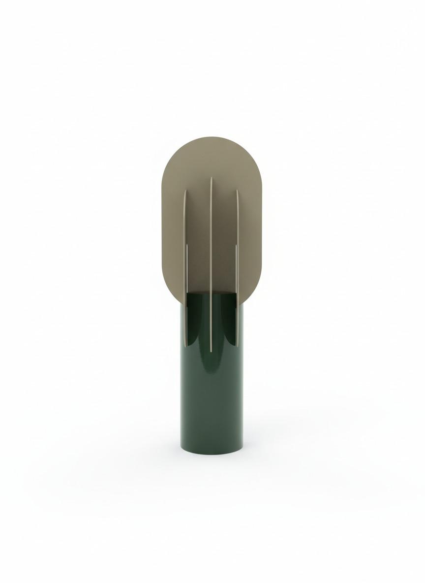 Le Totem Verde est une pièce sculpturale au design minimaliste, fusionnant lignes organiques et rigueur architecturale. Sa base cylindrique, d’un vert profond et brillant, évoque la stabilité et l’élégance. Surplombée d’une forme ovale aux teintes terreuses, ponctuée de fentes verticales comme des éclats de lumière, l’ensemble incarne l’équilibre entre nature et modernité.